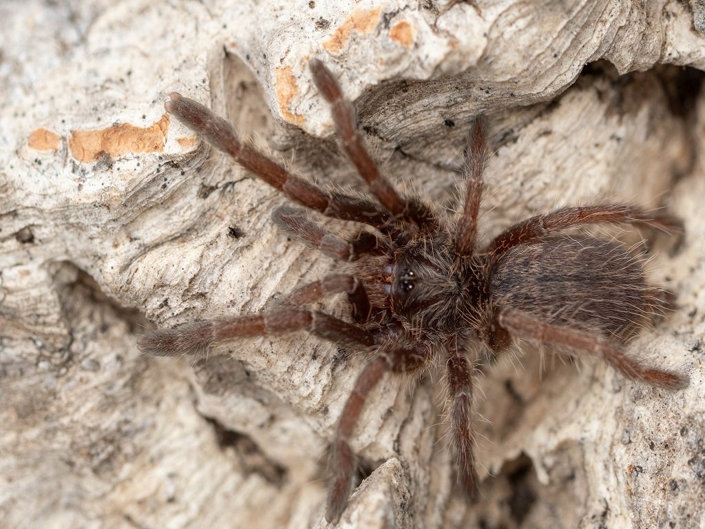 Africký zemní až norový sklípkan s typickým rohem na hlavohruďi, střední velikosti a vyšší toxicitou.
