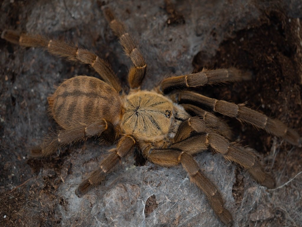 Vzácný norový sklípkan z Vietnamu (Ke Bang), tmavě zbarvený, vyžaduje hlubší substrát.