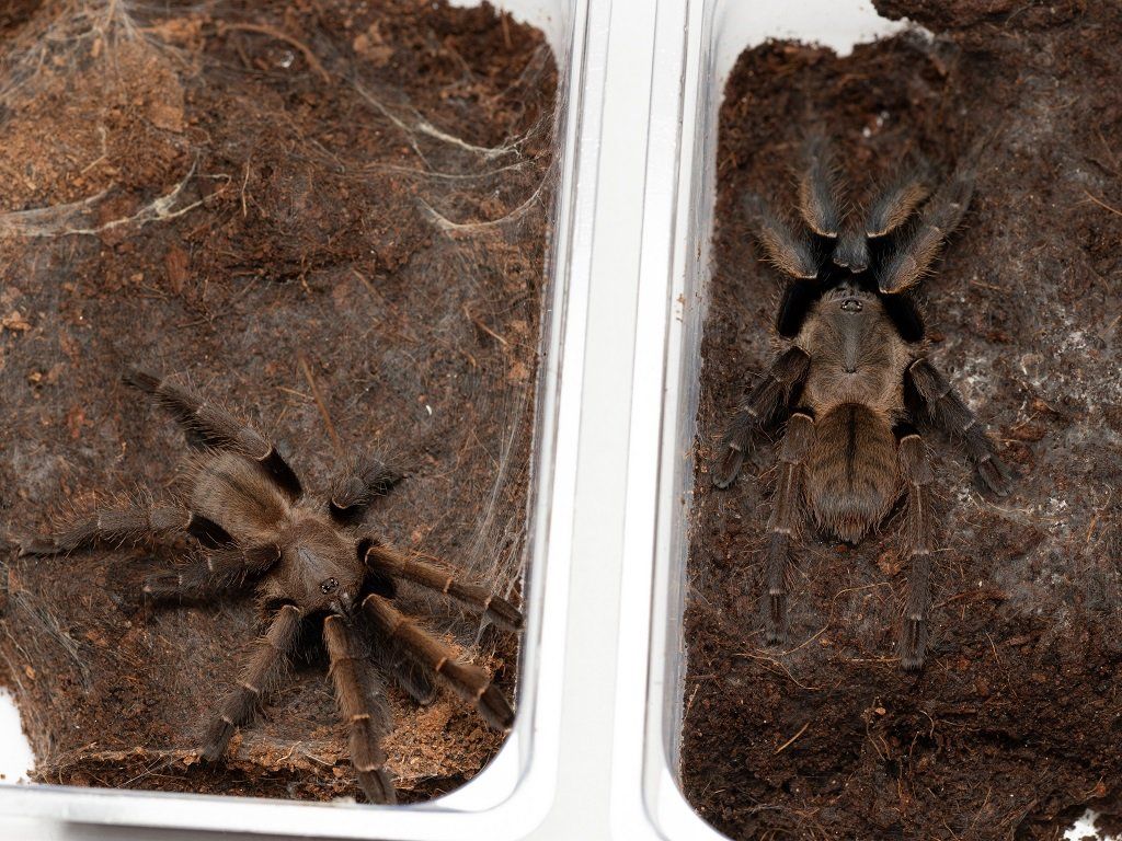 Větší asijský sklípkan, zajímavý svým kontrastním zlatočerným zbarvením.